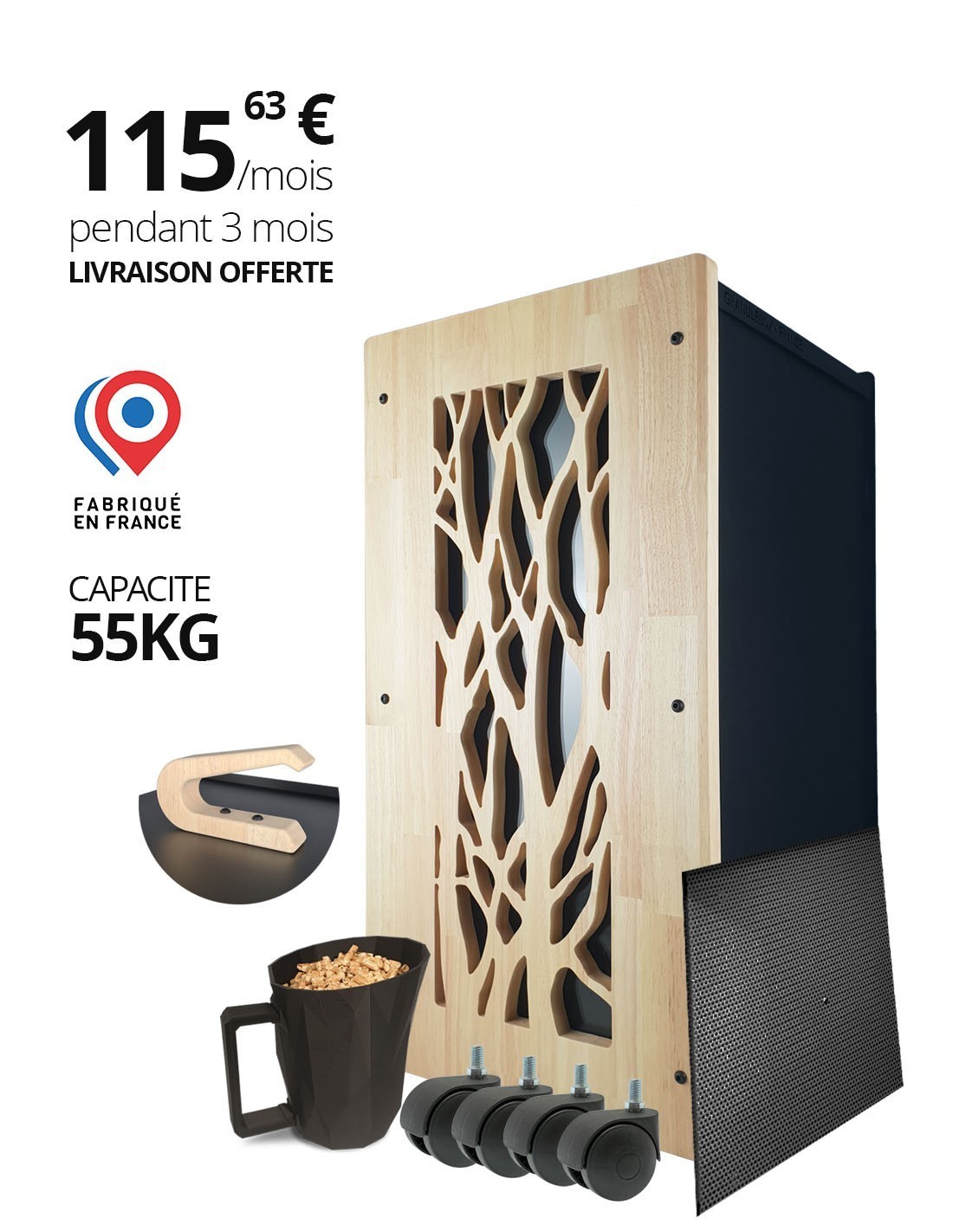J'ai pu passer commande du pack Premium avec la façade en évéa et la carcasse blanche; je suis satisfaite de ce pack aux tons clairs qui s'intégre parfaitement dans mon intérieur. De plus, le rangement est vraiment bien conçu, pratique avec ses roulettes. Efficacité, modernité et bonne qualité du produit . Au top Granule Box !