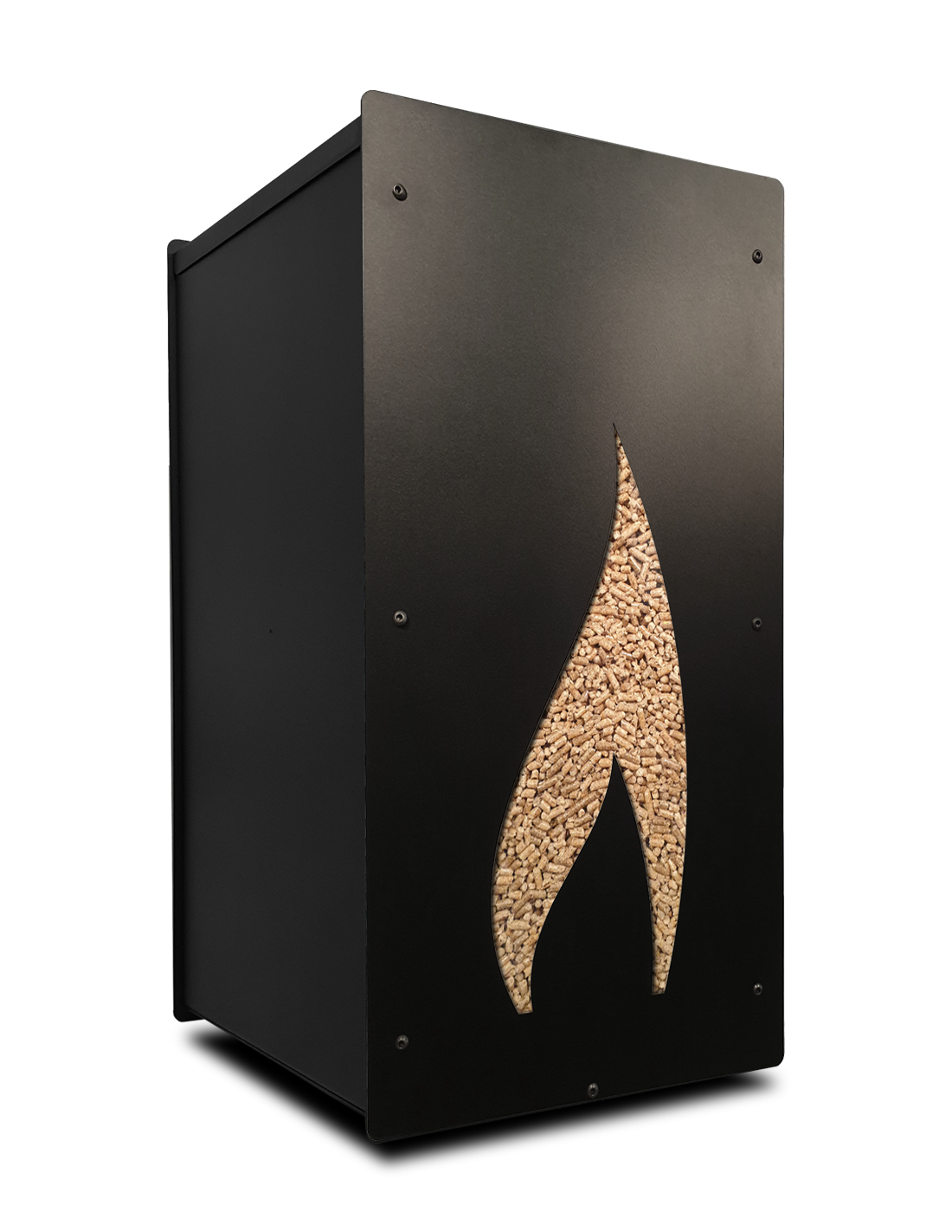 The Granulebox Flamme features a modern and sleek design. The pellet storage structure is made of robust and thick steel, crafted from carefully selected high-quality and durable steel sheets. The wood pellet storage is then coated with a thermosetting paint, providing remarkable heat resistance from the pellet stove and increased durability. The attention to detail in the manufacturing of the wood pellet storage ensures not only an original piece of furniture but also a product designed to last over time.