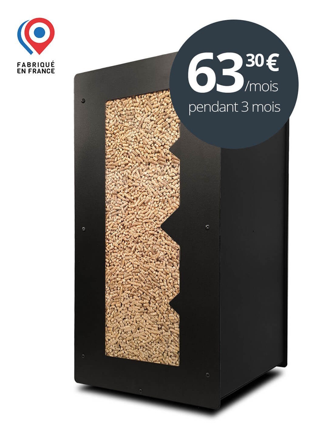 Using wood pellet storage like the Granulebox offers numerous advantages. First, keeping your wood pellets close to the stove helps reduce their moisture content by capturing ambient heat. An ideal moisture content improves pellet combustion, increases the heating efficiency of your stove, and reduces pellet consumption. Additionally, this minimizes clogging in the burner pot and flue, thereby extending the lifespan of your installation.